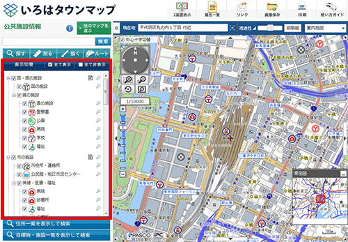 ※「全て選択」または「全てはずす」を押下することにより、全てのレイヤの「表示/非表示」が設定可能です。